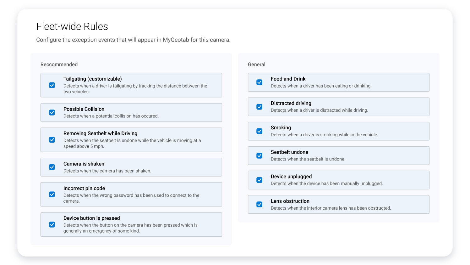 Access the MyGeotab platform (or your integrated telematics solution) to review videos, analyze driver behavior, and implement corrective actions.